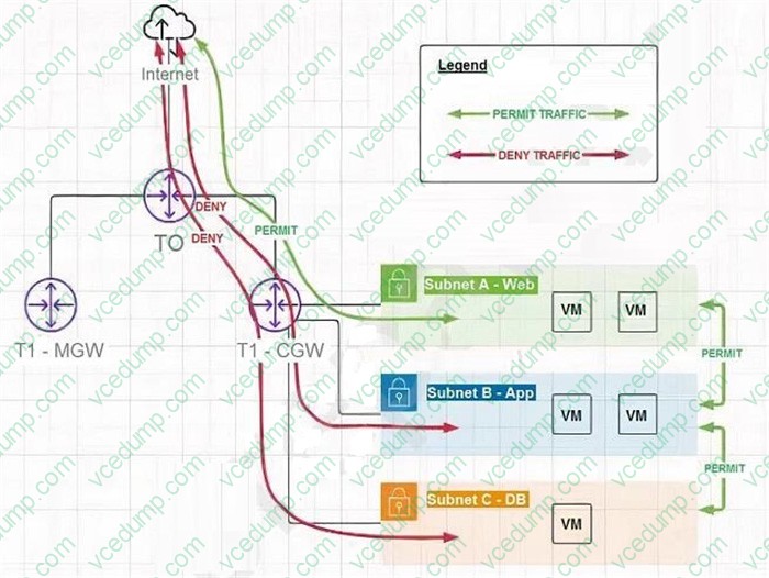A. Create a gateway firewall rule permitting bi-directional traffic to Subnet A from the Internet. Create a gateway firewall rule denying bi-directional traffic to Subnet B and Suubnet C from the Internet. Create a distributed firewall rule under the Application category to permit bi-directional traffic from Subnet A to Subnet B and from Subnet B to Subnet C. B. Create a gateway firewall rule permitting bi-directional traffic to Subnet A from the Internet. Create a distributed firewall rule denying bi-directional traffic to Subnet B and Subnet C from the Internet. Create a distributed firewall rule under the Ethernet category to permit bi-directional traffic from Subnet A to Subnet B and from Subnet B to Subnet C. C. Create a gateway firewall rule permitting bi-directional traffic to Subnet A from the Internet. Create a gateway firewall rule denying bi-directional traffic from the Internet to all subnets. Create a distributed firewall rule under the Infrastructure category to permit bi-directional traffic from Subnet A to Subnet B and from Subnet B to Subnet C. D. Create a gateway firewall rule permitting bi-directional traffic to Subnet A from the Internet. Create a gateway firewall rule denying bi-directional traffic to Subnet B and Subnet C from the Internet. Create a gateway firewall rule to permit bi-directional traffic from Subnet A to Subnet B and from Subnet B to Subnet C.