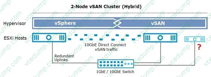 When designing a 2-node vSAN cluster, which missing configuration requirement prevents a split-brain scenario?