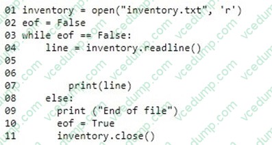 A. name = inputYou are writing a Python program to automate inventory. Your first task is to read a file of inventory transactions. The file contains sales from the previous day, including the item id, price, and quantity. The following shows a sample of data from the file: