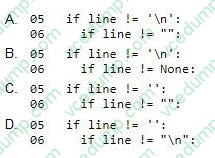 Which code segments should you use for line 01 and line 04? Each correct answer presents part of the solution? (Choose two.)