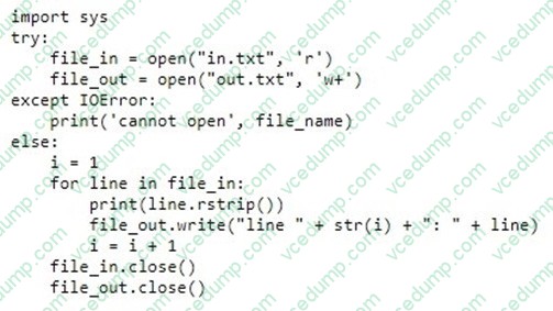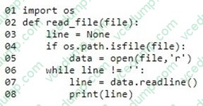 A. No change is neededYou are creating a function that reads a data file and prints each line of the file. You write the following code. Line numbers are included for reference only.