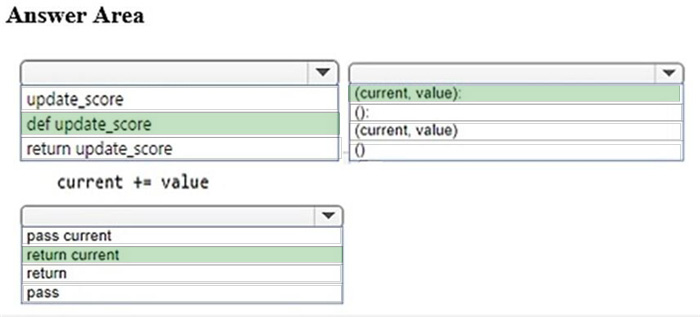 How should you complete the code? To answer, select the appropriate code segments in the answer area.