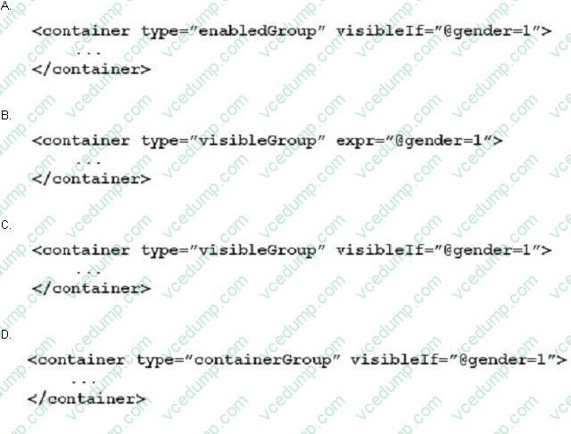 Which assessment should you use to hide a container in a form when gender is equal to a value of 1?