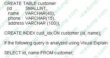 A table named CUSTOMER and an index named CUST_IDX were created as follows: