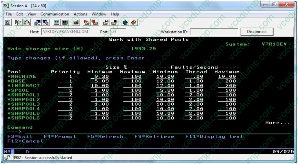 A. Create a group profile named ITADMIN.Create a user profile named User1 with *ALLOBJ authority and make it a member of ITADMIN. Grant the ITADMIN group *EXCLUDE authority to the library PAYROLL.In the Work With Shared Pools panel shown, what is the meaning of the "Maximum" column under the "Size" section?