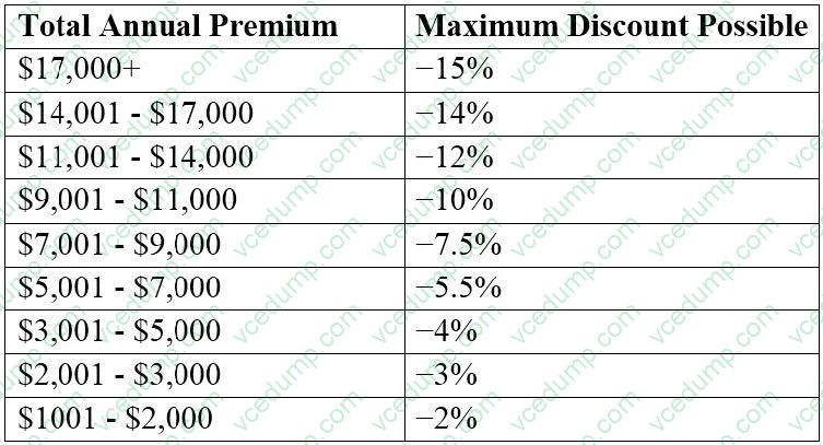 Various financial models are considered but the stakeholders agree that an initial applicable discount is determined based on the customer's overall premium:
