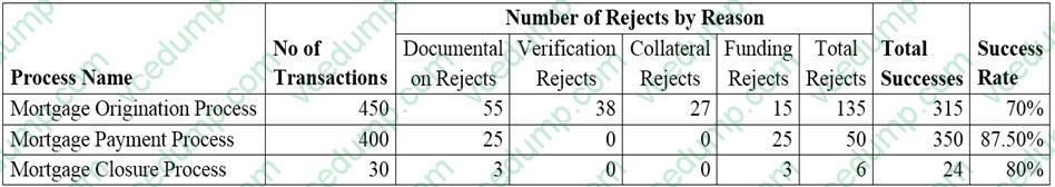 A. Mortgage payment processA financial institution engaged in mortgage lending has embarked on a business process improvement initiative to eliminate the activities that hinder growth to ultimately improve the success rate of its mortgage business. As a benchmark for