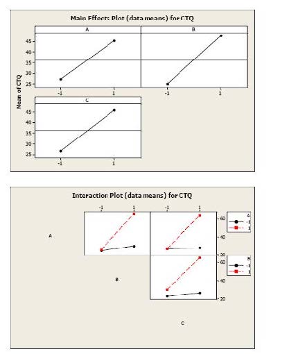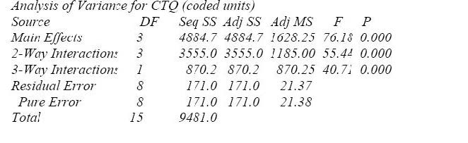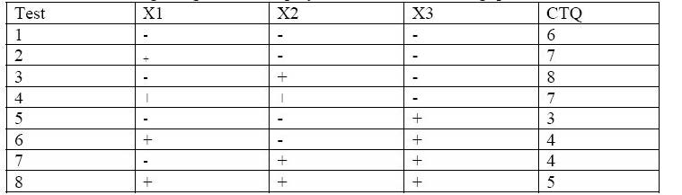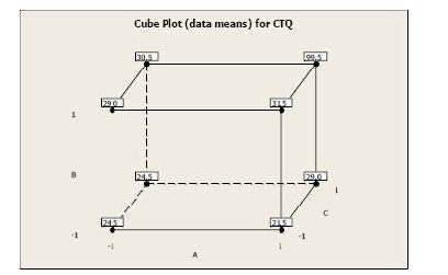 Analyze the following 23 full factorial design with 2 replications data using Minitab.