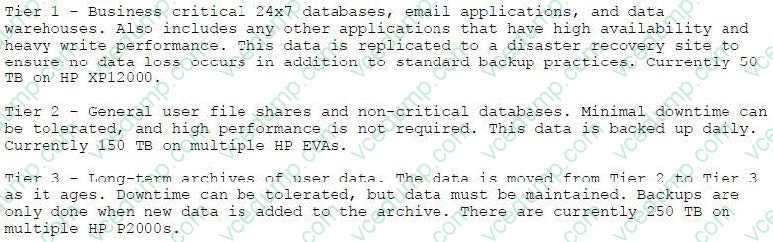 A. HP 3PAR Gen3 ASIC per interface carYou are working with a local children's hospital on a full storage refresh proposal. The hospital has implemented a three-tier storage strategy as detailed below.