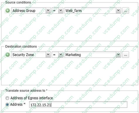 A. Dynamic NAT is used for any traffic that is sourced from the Web_farm to the Marketing zone.When you configure the NGFW appliance in transparent firewall mode, which configuration is mandatory?