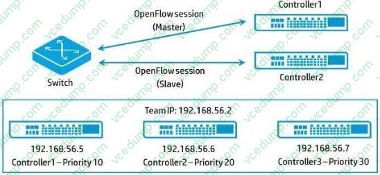 A team of HP VAN SDN Controllers has been configured. In addition, regions have been configured. The switch shown in the exhibit has two OpenFlow sessions as follows: