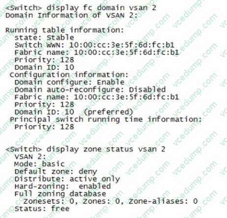 A VSAN is being set up on an HP Comware switch that will connect to server Converged Network Adapters (CNAs) and storage systems The administrator is checking the configuration of the VSAN with display commands The exhibit shows the results.