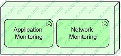 A. A node with two system software environments. One performs Application Monitoring, the other Network MonitoringWhich of the following answers contains only concepts within the scope of the ArchiMate Implementation and Migration extension?