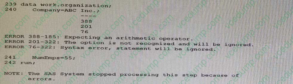 A. if ageThe SAS log of a submitted DATA step is shown below: