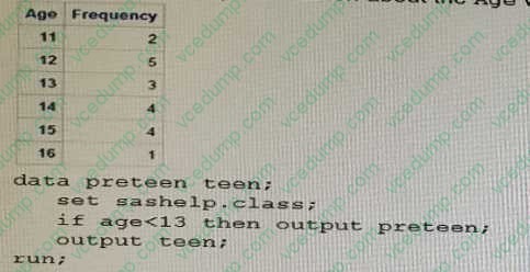 A. There is a syntax error in the FORMAT statement in the PROC PRINT step.The sashelp. class data set has 19 observations. Given the frequency information about the Age, shown below: