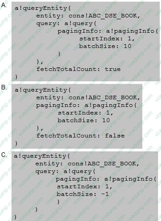 You need to write code to pull back entries from the abc_book table as CDT objects. You only want 10 entries, but you need to know the total number of entries in the table.