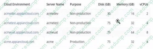 Review the specs for four environments in the following image.