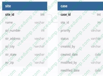 You decide to create a view as the source of your entity-backed record, which joins the separate case/site tables (as depicted in the following Image).