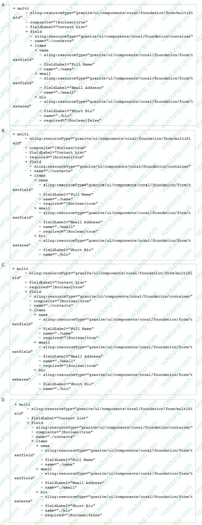 A. /crx-quickstart/logs/request.logA developer is working on a dialog for a contact list component. The dialog has the following requirements: