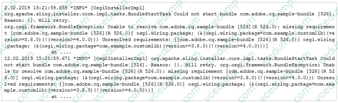 What are two different ways that the developer could resolve the OSGi bundle dependency error? (Choose two.)