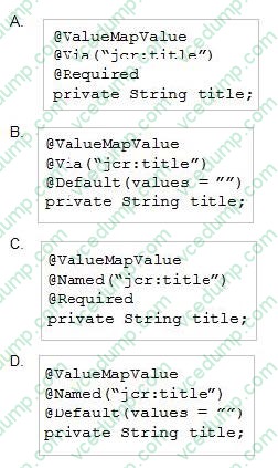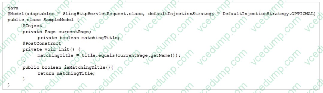 The model must check if the configured value of the jcr:title property for the component matches the name of the current page. If the jcr:title property of the component has NOT been configured, then isMatchingTitle() must return false. How should the developer inject the title property in this model?