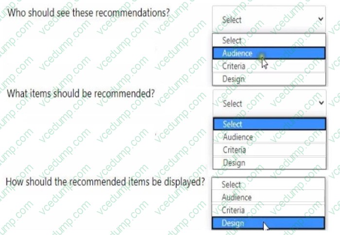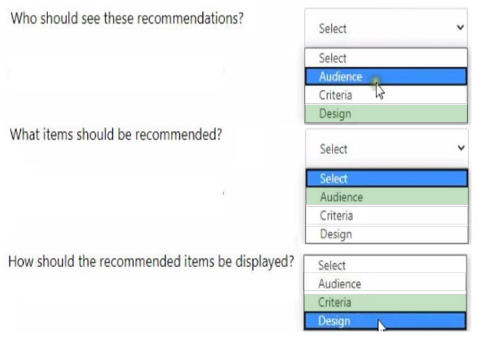 A. Offering an opportunity to easily compare the last three viewed credit cards on a product comparison page by placing a "compare recently-viewed credit cards" link in the hero will increase application completions.The product team wants to determine whether a `viewed also viewed'' or bought also bought'' Recommendations logic would drive product views. What is the correct way to test both Recommendations Criteria?