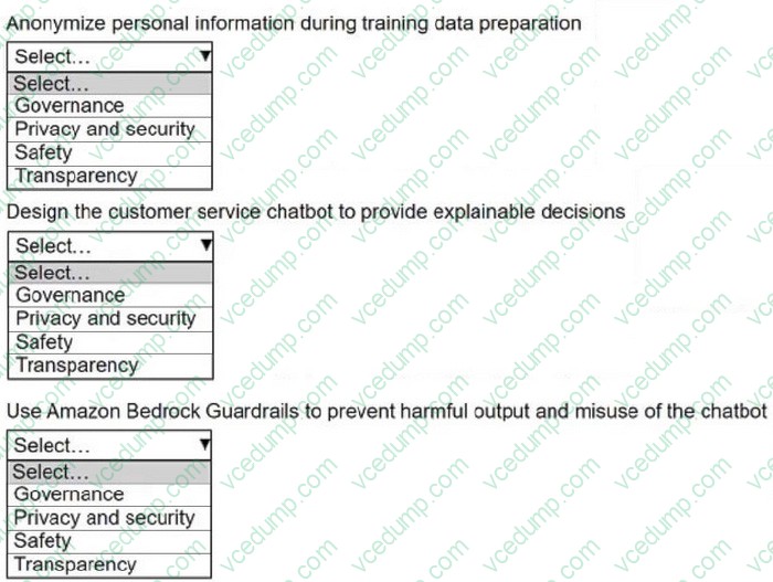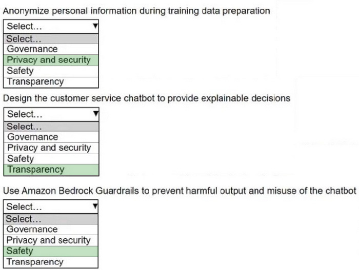 A company is designing a customer service chatbot by using a fine-tuned large language model (LLM). The company wants to ensure that the chatbot uses responsible AI characteristics.