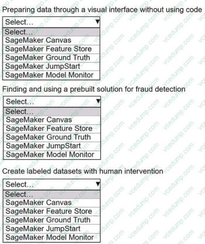 Select the correct SageMaker feature from the following list for each use case. Each SageMaker feature should be selected one time or not at all.
