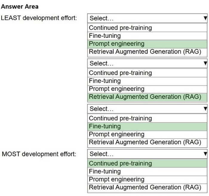 Select the correct model customization method from the following list of company requirements. Each model customization method should be selected one or more times.