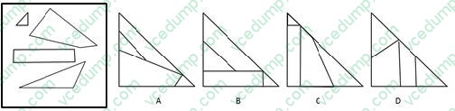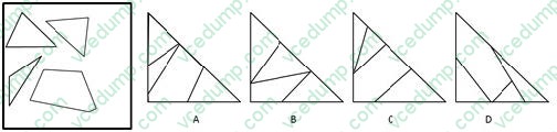 Which figure best shows how the objects in the left box will appear if they are fit together?