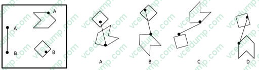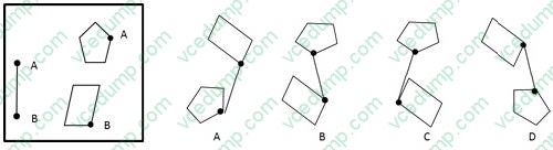 Which figure best shows how the objects in the left box will touch if the letters for each object are matched?