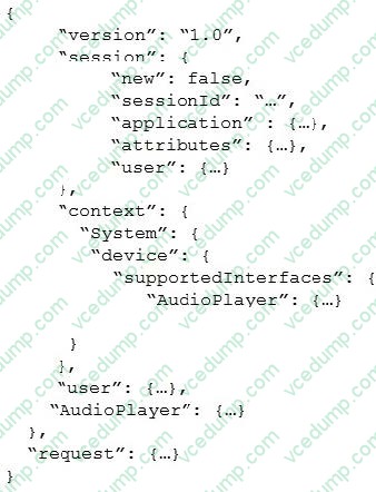 A. Create custom intents using the help utterances that are specific to the skill, and remove AMAZON.HelpIntent.An Alexa Builder is working on a skill for music streaming. When a user says, "Alexa, stop" the skill needs to know where the user was in the song, so that when returning to the skill in a new session, the song can pick up where it left off. Which section of the following JSON contains the data indicating where the song left off?