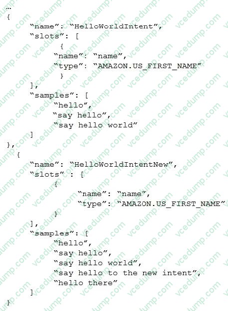 A. Make changes in the skill code, deploy it, and test it on the device.The information below details a portion of an interaction model in JSON: What is wrong with this interaction model?