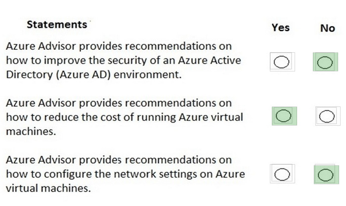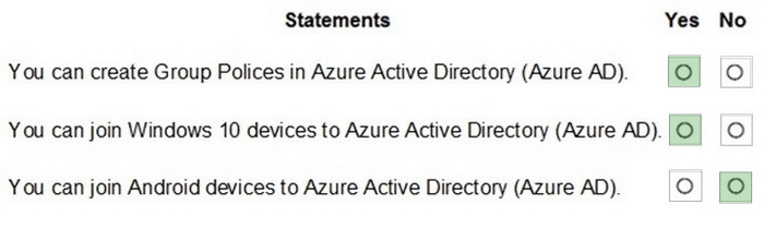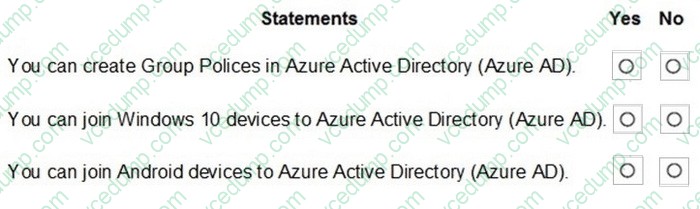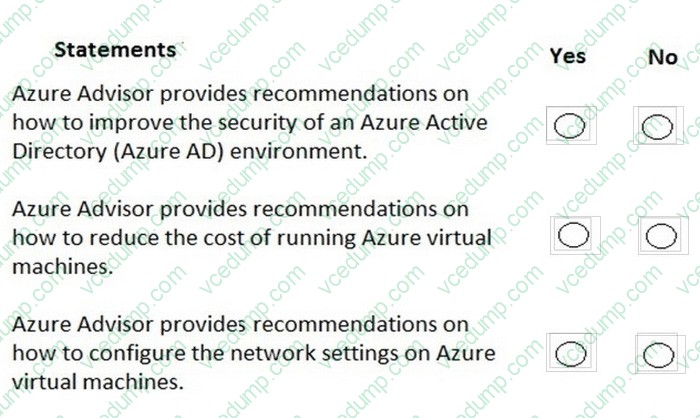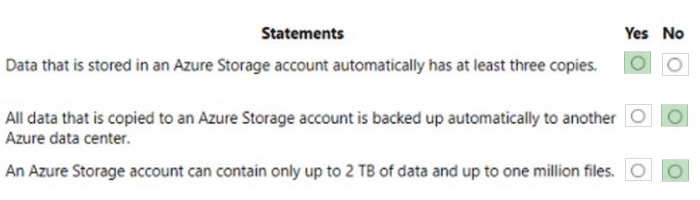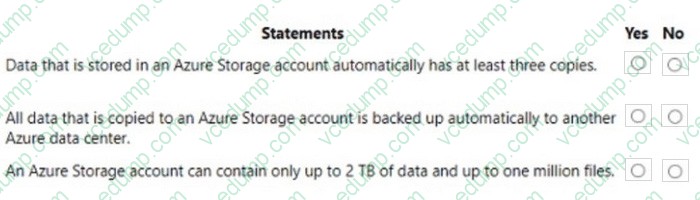For each of the following statements, select Yes if the statement is true. Otherwise, select No.