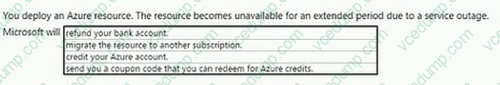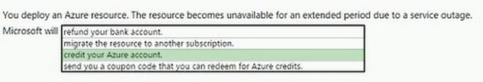 You deploy an azure resource. The resource becomes unavailable for an extended period due to a service outage. Microsoft will _____________________.