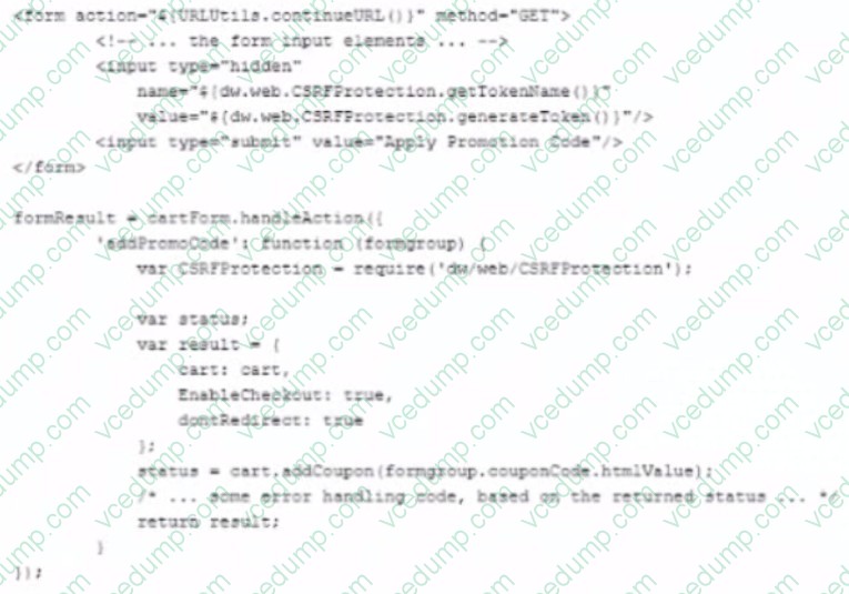 A. A new customer export Job must be created to export customers.A B2C Commerce Developer has just finished implementing a new promotion code form on checkout. During review, an Architect notes that the form it not using CSRF validationcorrectly.