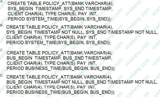 A. It has SYSTEM_TIME definedWhich of the following statements will create an application-period temporal table?