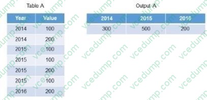 A. SQL viewUsing the table in the diagram, you need to create a cube calculation view. What is the simplest approach to create the output from the screen shot?