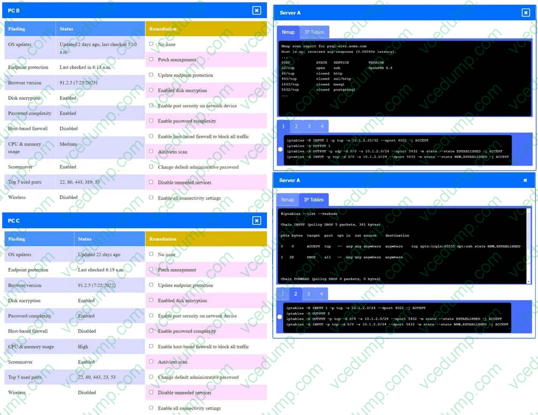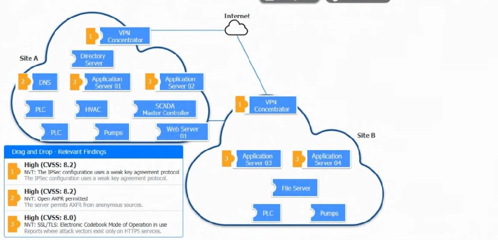 Review the following scenarios and instructions. Match each relevant finding to the affected host.