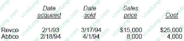The Moores had no capital loss carryovers from prior years. During 1994, the Moores had the following stock transactions, which resulted in a net capital loss: