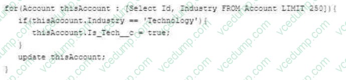Refer to the following code snippet for an environment that has more than 200 Accounts belonging to the Technology' industry: