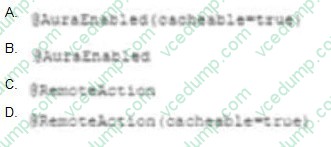 A. Developer ConsoleA developer wrote an Apex method to update a list of Contacts and wants to make it available for use by Lightning web components. Which annotation should the developer add to the Apex method to achieve this?