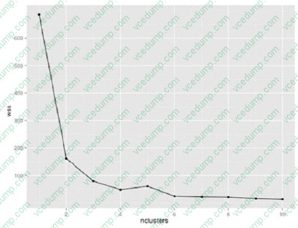 You are using K-means clustering to classify customer behavior for a large retailer. You need to determine the optimum number of customer groups. You plot the within-sum-of- squares (wss) data as shown in the exhibit. How many customer groups should you specify?