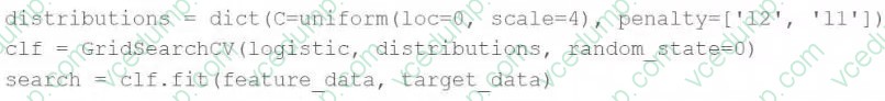 A. When the features are of the categorical typeA data scientist is attempting to tune a logistic regression model logistic using scikit-learn. They want to specify a search space for two hyperparameters and let the tuning process randomly select values for each evaluation.