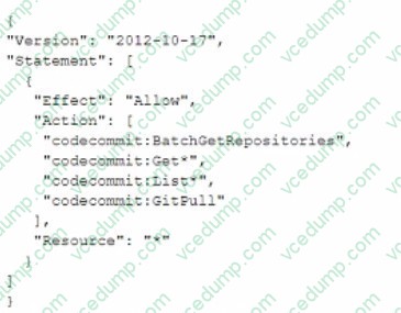 A developer accesses AWS CodeCommit over SSH. The SSH keys configured to access AWS CodeCommit are tied to a user with the following permissions: