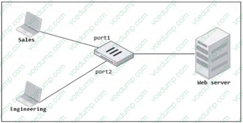 A. Enable Multiple Interface Policies to select port1 and port2 in the same firewall policy explanation: Explanation Explanation/Reference: To consolidate the two separate firewall policies for Sales and Engineering departments accessing the same web server, you can create an Interface Group that includes bothport1(Sales) andport2(Engineering). Once the Interface Group is created, you can use this group as a single incoming interface in a single firewall policy. This approach reduces the number of policies, making management more efficient. References: FortiOS 7.4.1 Administration Guide: Firewall Policy Configuration