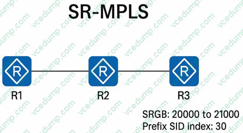 Refer to the exhibit, SR-MPLS is enabled on R1, R2, and R3. The SRGB (Segment Routing Global Block) range on R3 is from 20000 to 21000, and the prefix SID index configured on the loopback1 interface of R3 is 30.