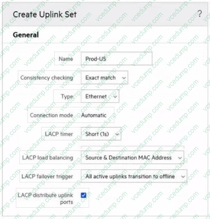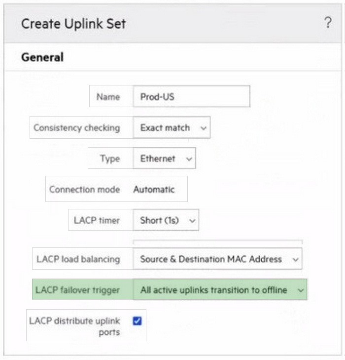 HOTSPOT An HPE Synergy customer needs to prevent a timeout and loss of communication during an external switch firmware upgrade. Click the parameter that the customer should configure within an uplink set to meet this requirement