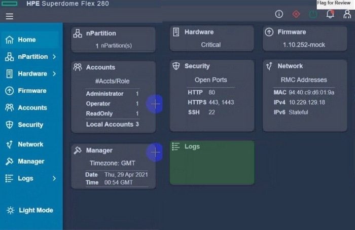 Click the appropriate section in the HPE Superdome Flex 280 management interface that will allow you to complete this task.