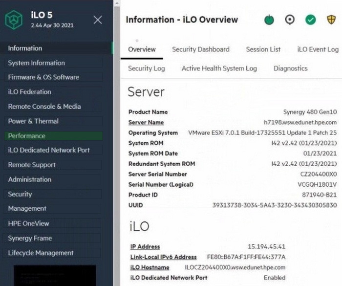 Click the area within the iLO management interface that will allow you to access workload Advisor.
